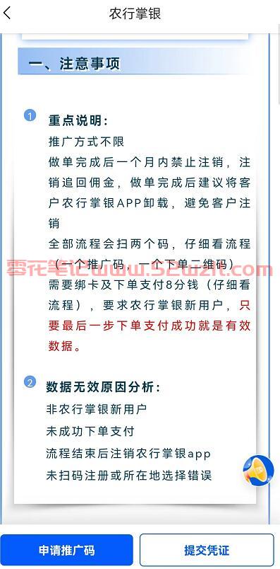做单完成后一个月内禁止注销,注销追回佣金,做单完成后建议将客户农行掌银APP卸载,避免客户注销