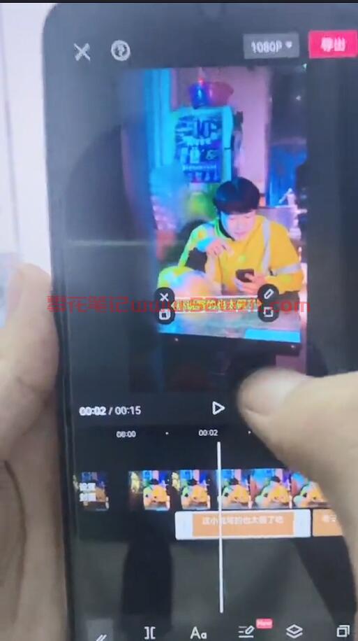 操作流程也不困难,首先我们需要添加文本,先创作自己的水印,拉到视频最后,点击视频轨道把白色轨道作为最前端关键帧,然后在中间移动作为几个关键帧,这样水印就会自动动态移动。